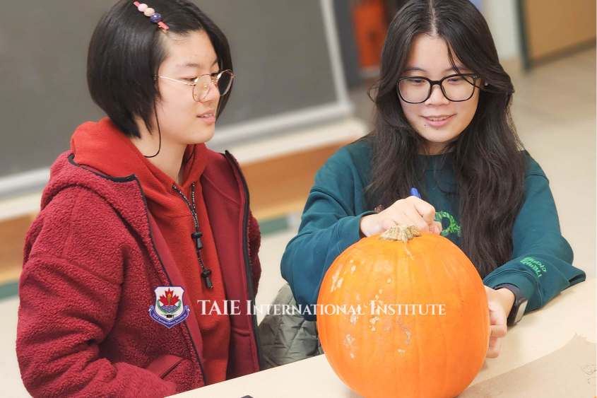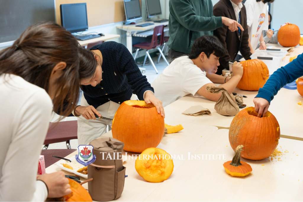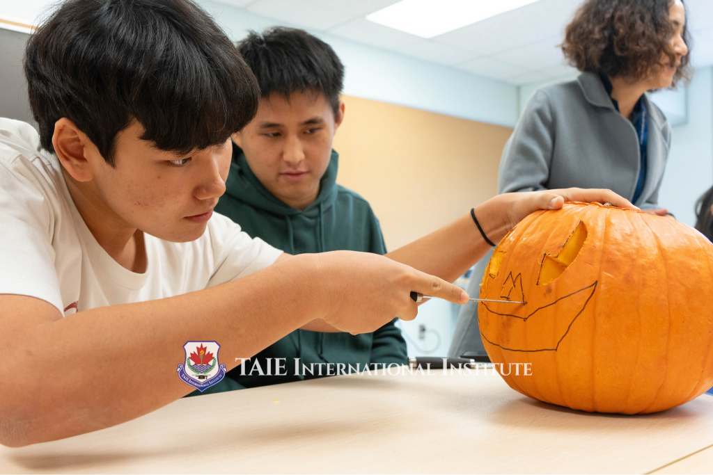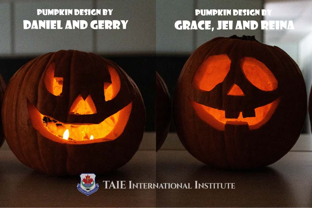 November 5 Our Halloween pumpkin carving workshop was an absolute blast! Fourteen students jumped in, teaming up in pairs or trios, to bring their pumpkin ideas to life. Together, they crafted a total of seven unique pumpkins. The whole school buzzed with excitement as students and even our principal rolled up their sleeves to carve their very own pumpkin creations. The energy was contagious, with laughter, creativity, and teamwork filling the room for a fun-filled 45 minutes. At the end of the workshop, two pumpkins stood out and earned well-deserved prizes! Huge congratulations to Gerry and Daniel and the team of Reina, Jei, and Grace for their amazing designs. This Halloween, we celebrated creativity, teamwork, and a touch of holiday spirit! At TAIE, we strive to create wonderful memories for our students as they experience foreign festivals!